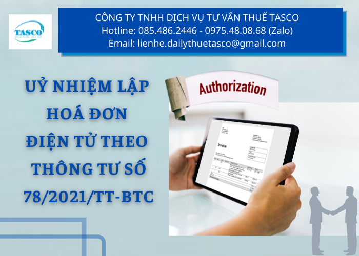 Bộ Tài chính vừa ban hành Thông tư số 78/2021/TT-BTC hướng dẫn về hóa đơn, chứng từ, có hiệu lực thi hành từ 01/7/2022. Thông tư đã hướng dẫn cụ thể các điểm mới về ủy nhiệm lập hóa đơn điện tử. Theo đó, người bán hàng hoá, cung cấp dịch vụ là DN, tổ chức kinh tế không trực tiếp lập hoá đơn thì có quyền uỷ nhiệm lập hoá đơn điện tử cho bên thứ ba. Dưới đây là một số quy định cụ thể về uỷ nhiệm lập HDDT theo Thông tư 78, Đại lý thuế TASCO mời quý khách hàng và bạn đọc tham khảo!