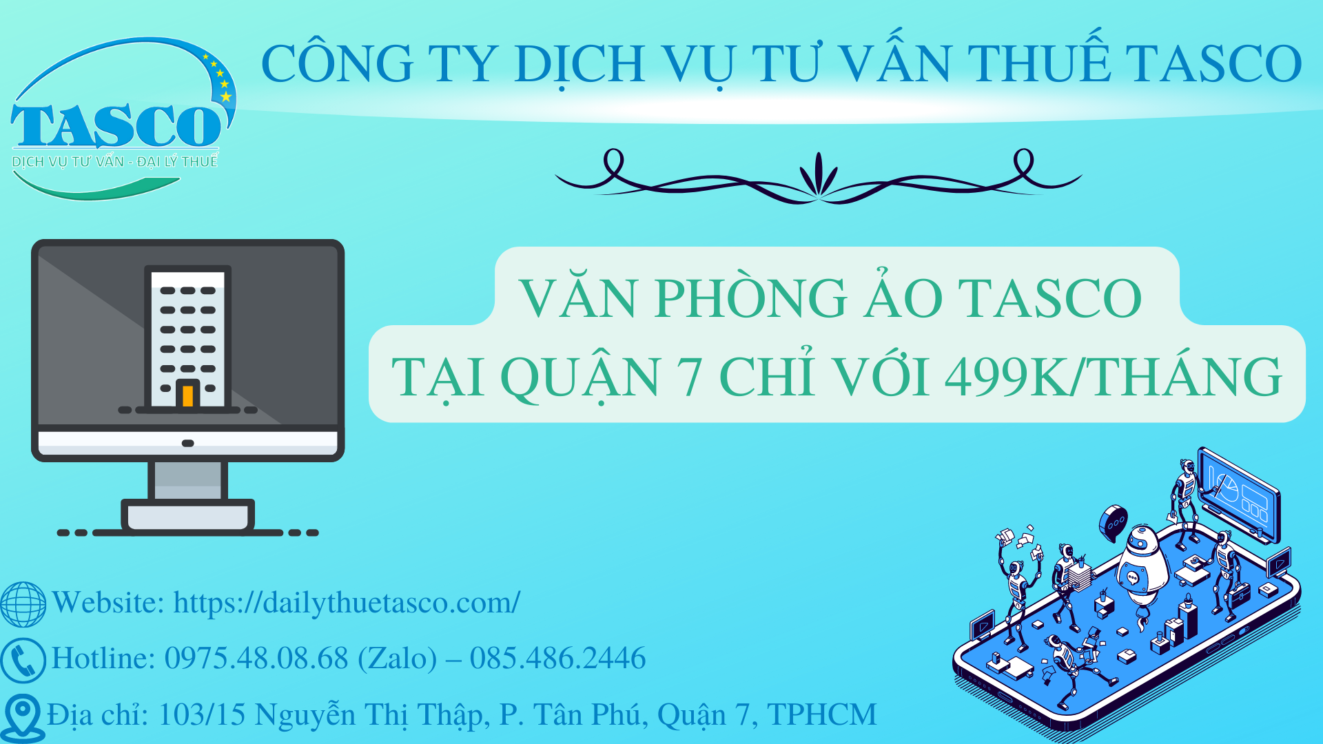 Văn phòng ảo TASCO tại quận 7 chỉ với 499k/tháng