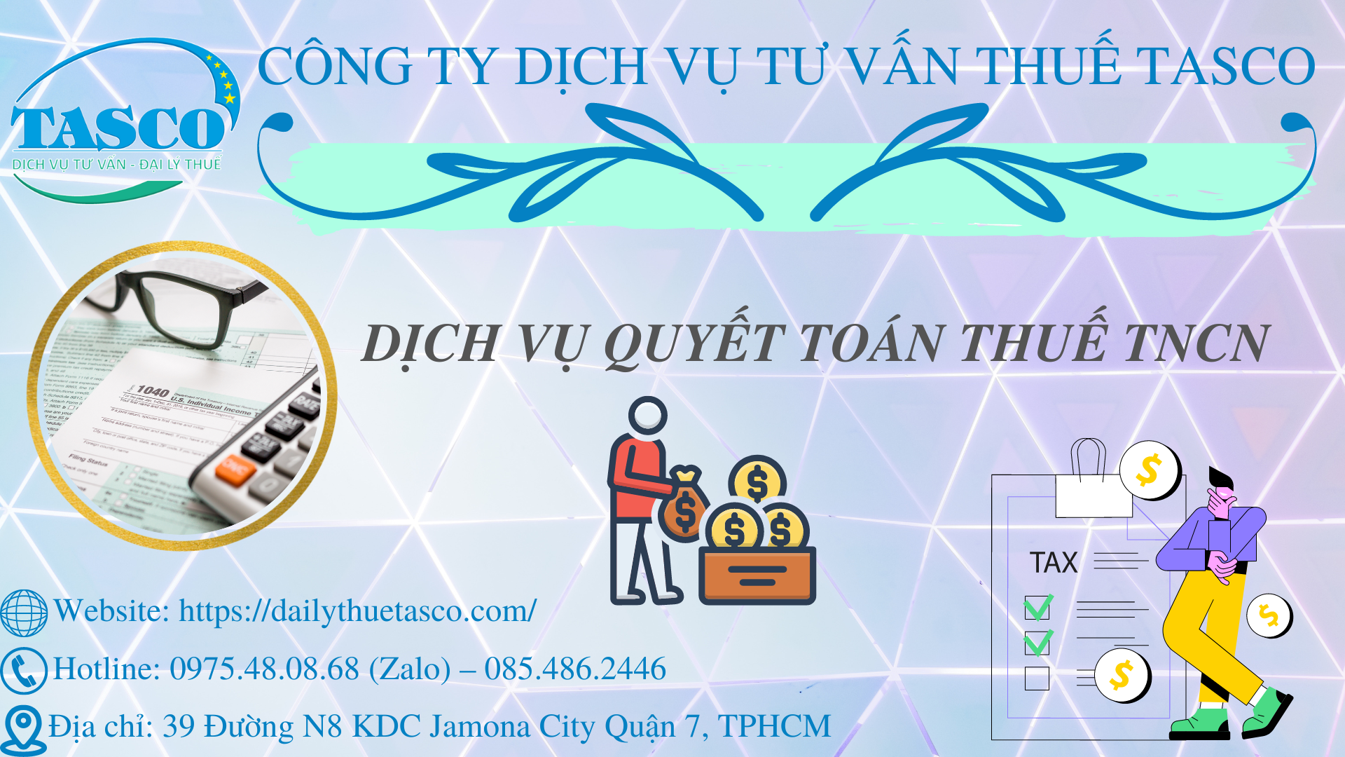 Cá nhân có thu nhập chịu thuế từ tiền lương, tiền công phải thực hiện quyết toán thuế thu nhập cá nhân. Cá nhân có thể tự quyết toán hoặc ủy quyền cho tổ chức quyết toán thay. Nhằm hỗ trợ, đồng hành cùng tổ chức, cá nhân, Đại lý thuế TASCO sẽ đem đến cho quý khách hàng dịch vụ quyết toán thuế TNCN với chi phí hợp lý và trách nhiệm cao.