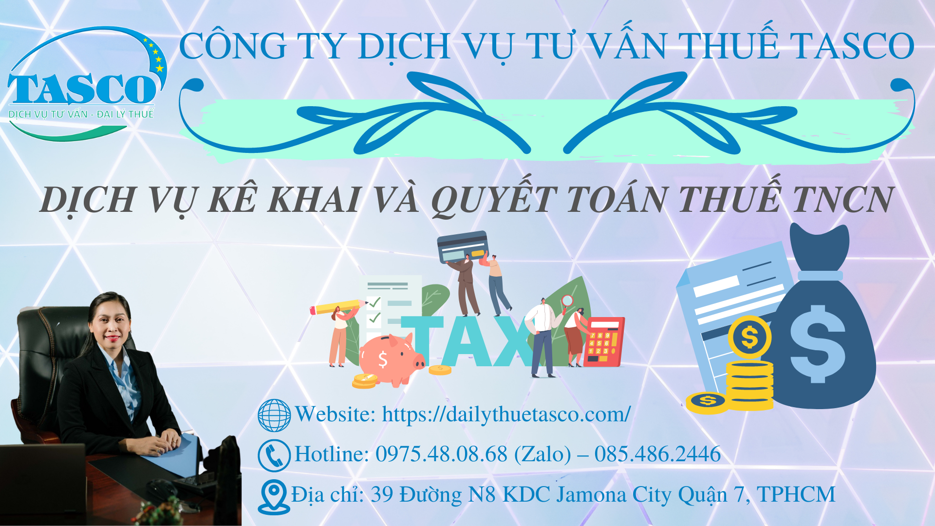 ⇒ Tiền thuế này được tính toán dựa trên rất nhiều các khoản phí và quy định khác nhau của pháp luật. Chính vì thế, dịch vụ kê khai và quyết toán thuế thu nhập cá nhân của TASCO đã ra đời để giúp các cá nhân và tổ chức có thể giải quyết được vấn đề về thuế này một cách hiệu quả và chính xác nhất.