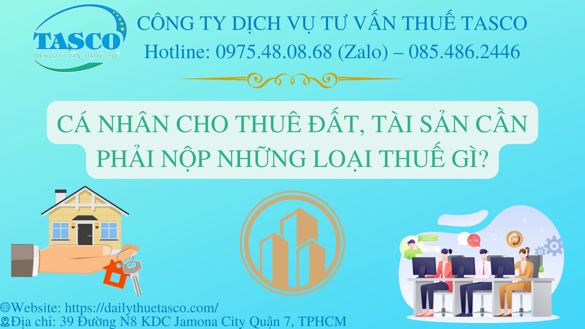 Bạn đang có một miếng đất trống và có nhu cầu cho thuê để kiếm thêm thu nhập? Hoặc bạn đang có một căn nhà trống cần cho thuê để kiếm thêm thu nhập? Nhưng bạn không nắm rõ về các quy định nộp thuế? Cần nộp những loại thuế gì? Bài viết này của TASCO sẽ giải đáp tất cả những vướng mắc của quý khách hàng về những loại thuế phải nộp khi cá nhân cho thuê đất, tài sản.