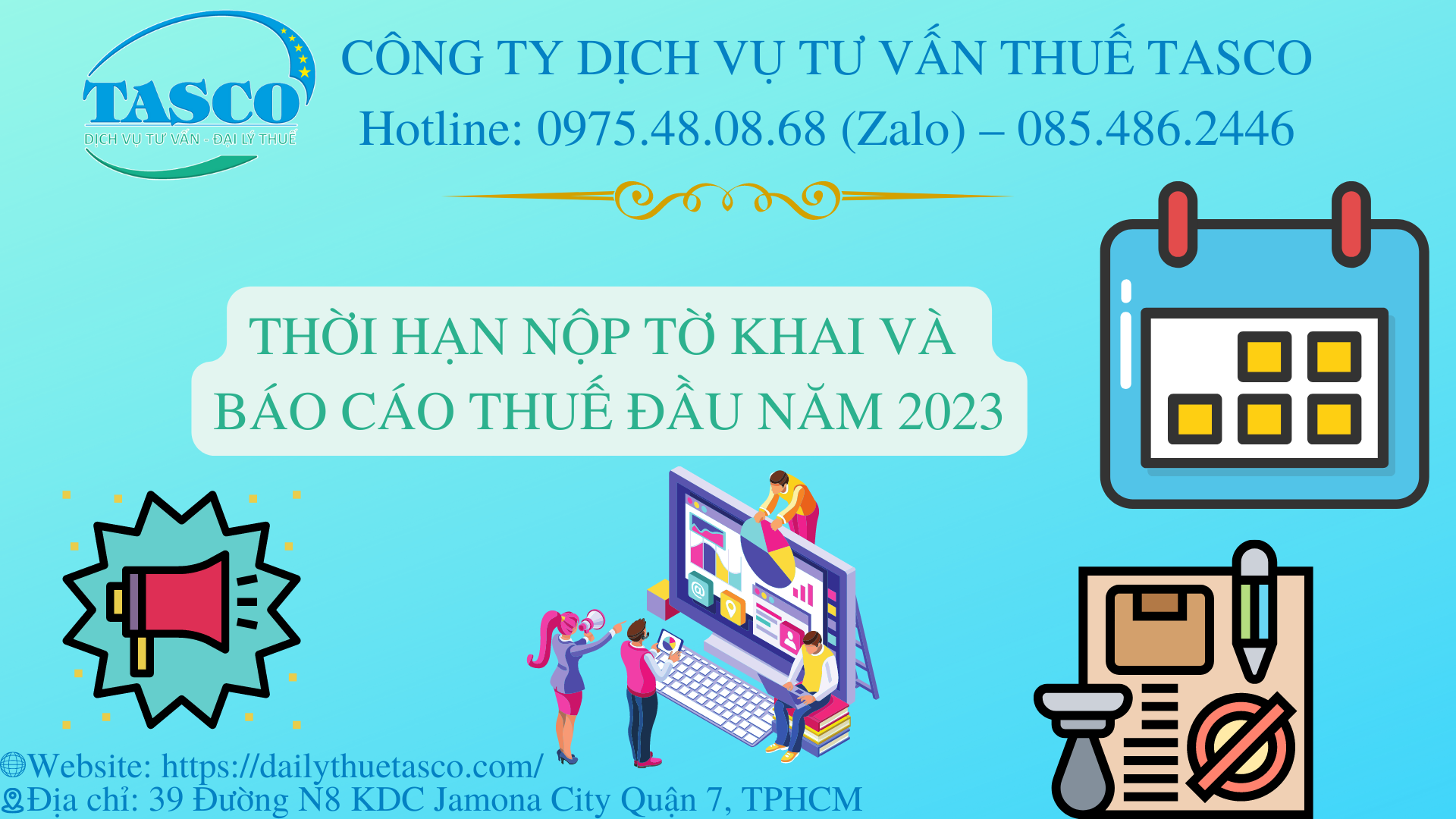 Đầu năm dương lịch luôn là thời điểm mà bộ phận kế toán thuế tại bất cứ doanh nghiệp nào đều rất bận rộn khi phải chuẩn bị báo cáo thuế quý 4, báo cáo tài chính và quyết toán năm. Bài viết này của Đại lý thuế Tasco sẽ giúp quý khách hàng nắm rõ được Thời hạn nộp tờ khai, báo cáo thuế đầu năm 2023 để chủ động trong việc khai thuế đúng hạn tránh rủi ro bị phạt lên đến hàng chục triệu đồng.