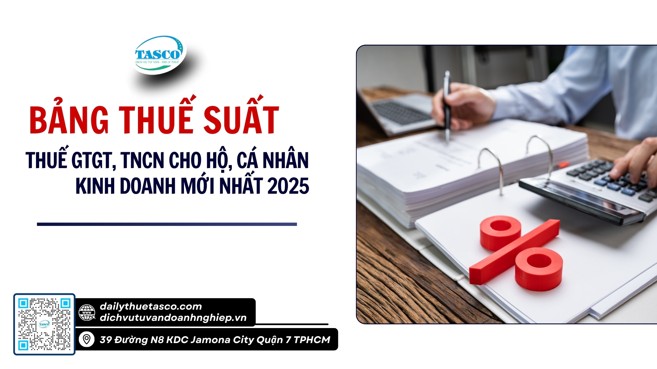 Bảng thuế suất thuế GTGT, TNCN cho hộ, cá nhân kinh doanh mới nhất 2025.