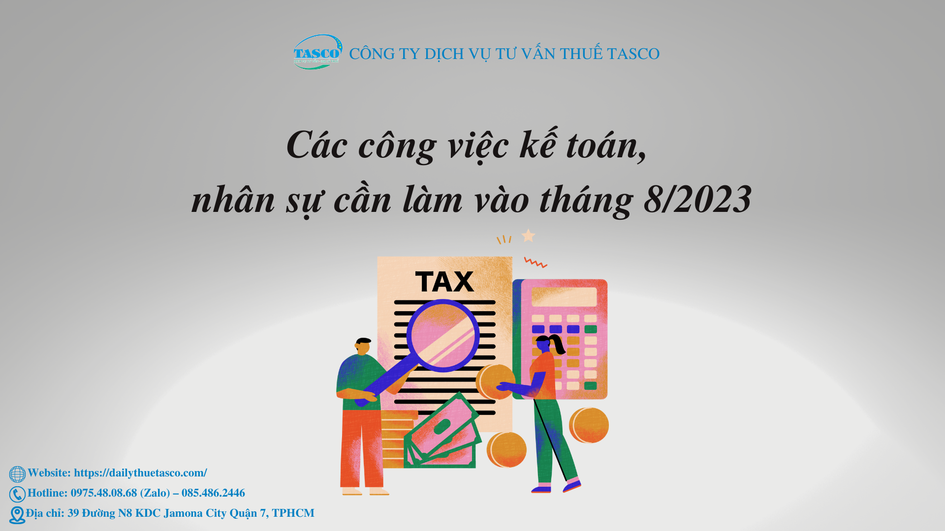 Trong tháng 8/2023 tới, doanh nghiệp phải thực hiện việc kê khai thuế, đóng bảo hiểm xã hội và các công việc nhân sự khác như thế nào? Bài viết sau đây Đại lý thuế Tasco sẽ chia sẻ đến quý doanh nghiệp.