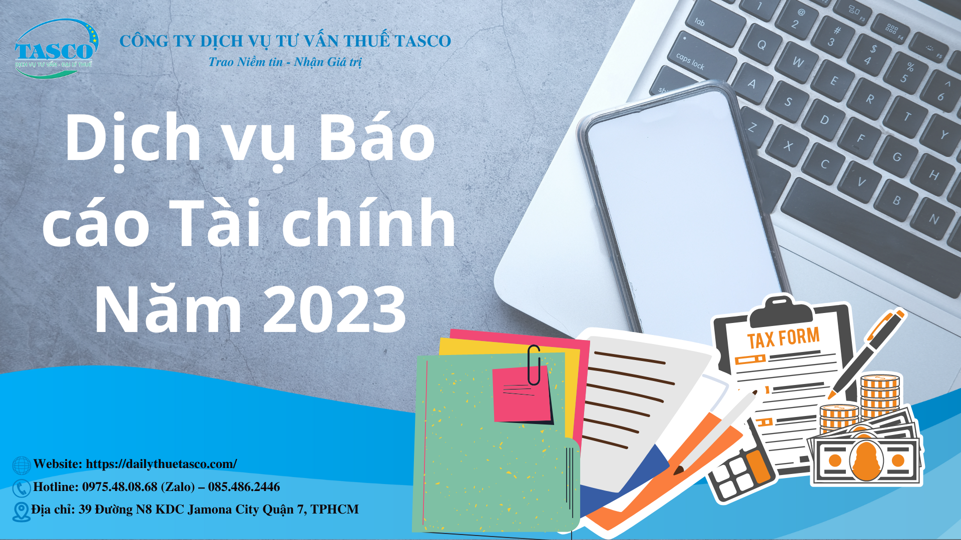 Đại lý thuế TASCO cung cấp dịch vụ báo cáo tài chính năm 2023, đảm bảo tính trung thực và hợp lý, cam kết hỗ trợ doanh nghiệp thực hiện đúng về chuẩn mực kế toán và các quy định theo pháp luật. Với kinh nghiệm hơn 20 năm cung cấp các dịch vụ liên quan đến kế toán thuế, Tasco xin cam kết hỗ trợ doanh nghiệp tăng chi phí hợp lý và tối ưu thuế theo đúng quy định pháp luật.