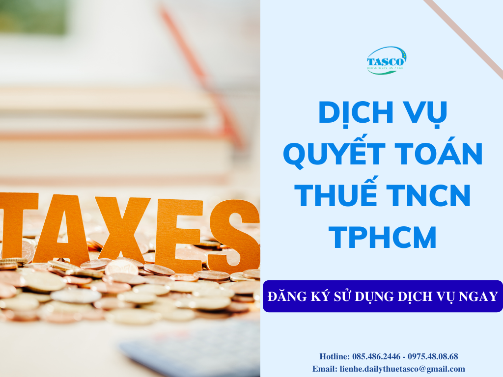 .Quyết toán thuế thu nhập cá nhân là việc cá nhân xác định đầy đủ nghĩa vụ thuế trong một năm, một kỳ tính thuế của cá nhân với ngân sách nhà nước. Dịch vụ quyết toán thuế TNCN TPHCM của TASCO sẽ tư vấn, hỗ trợ khách hàng chuẩn bị hồ sơ quyết toán thuế cần thiết theo quy định. Dịch vụ quyết toán thuế TNCN TPHCM của Tasco là một dịch vụ uy tín, chất lượng, hiệu quả và tiết kiệm nhất hiện nay tại TP HCM với hơn 200 khách hàng đã tin tưởng và sử dụng dịch vụ.