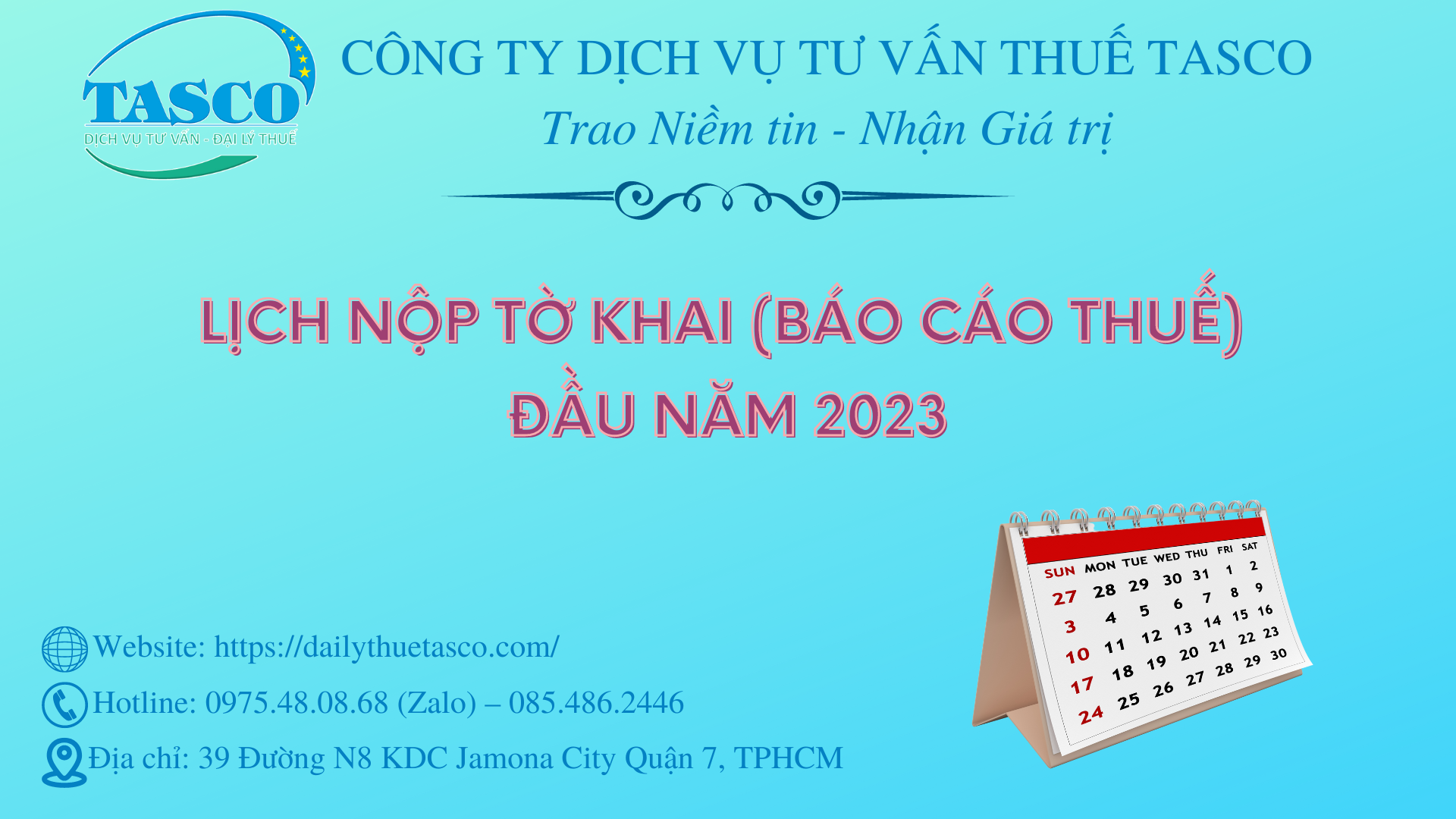 Lịch nộp tờ khai (báo cáo thuế) đầu năm 2023