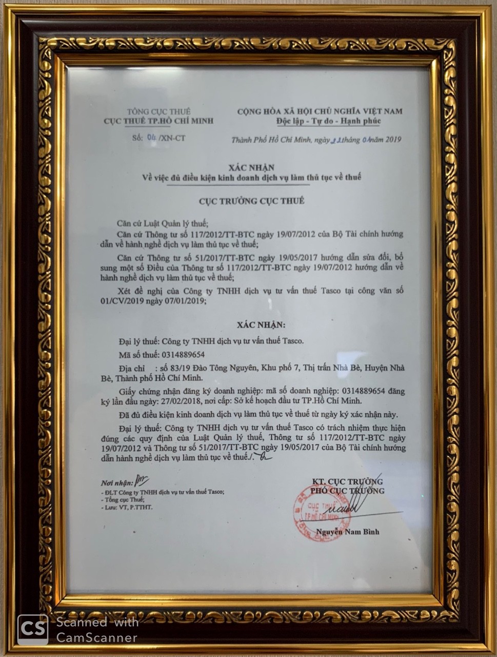 ✨ TASCO Tax Agent operates based on the certification of eligibility to practice tax procedure services by the Department of Taxation of Ho Chi Minh City, contact us immediately if you are in need of a prestigious and quality VAT refund service.