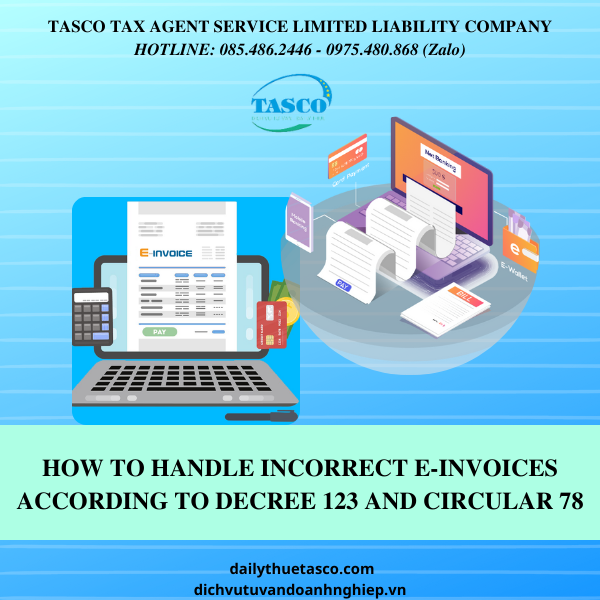 ▶️ Tax Agent TASCO has summarized the contents that the business community needs to pay special attention to related to the procedure for handling incorrect e-invoices according to Decree 123 and Circular 78. However, this is only is specified in the document, in fact, there are other cases that arise, you can contact TASCO Tax Agent for more specific support.