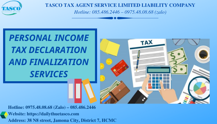 ⇒ This tax is calculated based on various fees and provisions of law. Therefore, TASCO's personal income tax declaration and finalization service was born to help individuals and organizations solve this tax problem in the most effective and accurate way.