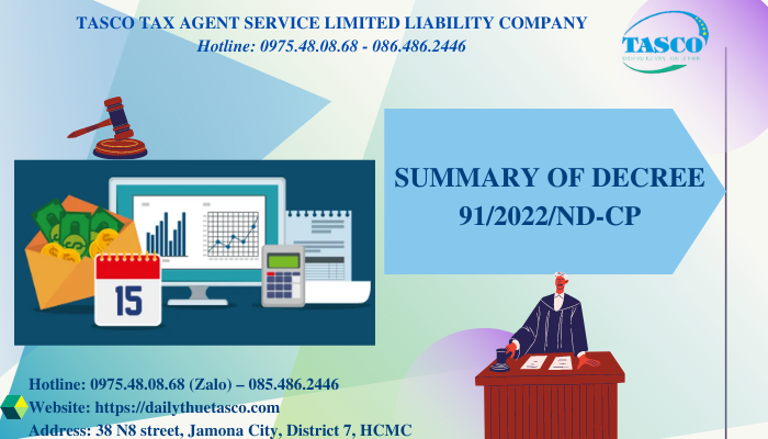 On October 30, 2022, the Government issued Decree 91/2022/ND-CP, which amended many important provisions of Decree 126/2020/ND-CP related to tax administration. This article of TASCO will help customers summarize the important amended contents of Decree 91/2022/ND-CP.