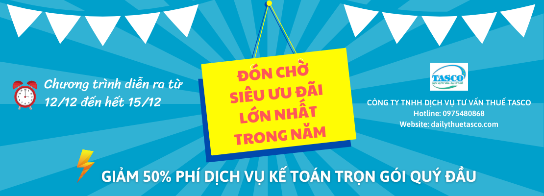 CÙNG NHAU ĐÓN CHỜ VÀ NHANH TAY ĐĂNG KÝ ĐỂ HƯỞNG NGAY ƯU ĐÃI CỰC SỐC ĐẾN TỪ ĐẠI LÝ THUẾ TASCO TRONG CÁC NGÀY 12 - 15/12!
