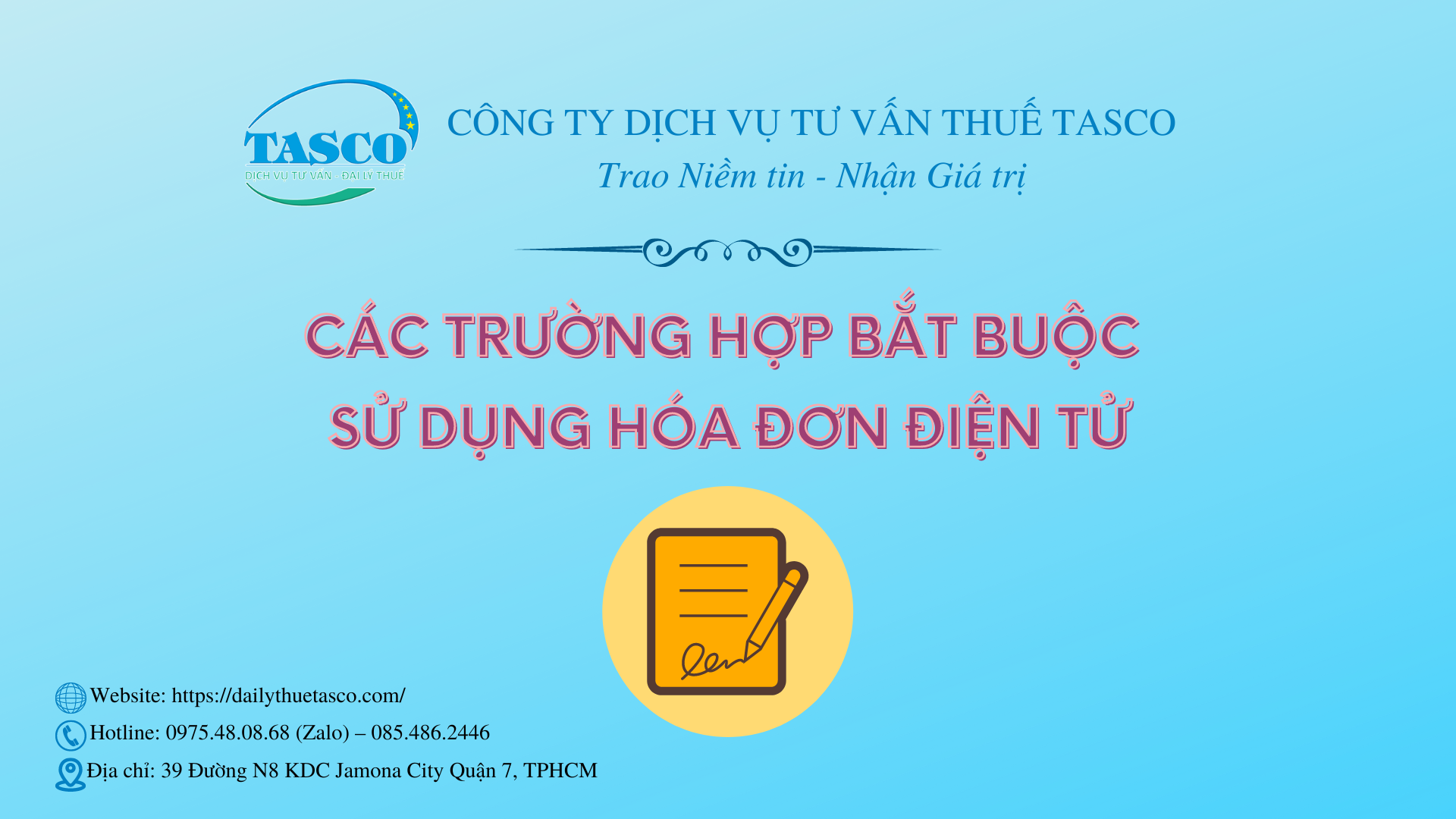 Đại lý thuế Tasco chia sẻ đến quý doanh nhân về các trường hợp bắt buộc sử dụng hóa đơn điện tử năm 2023.