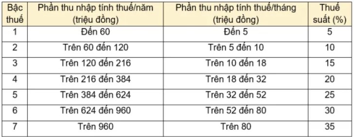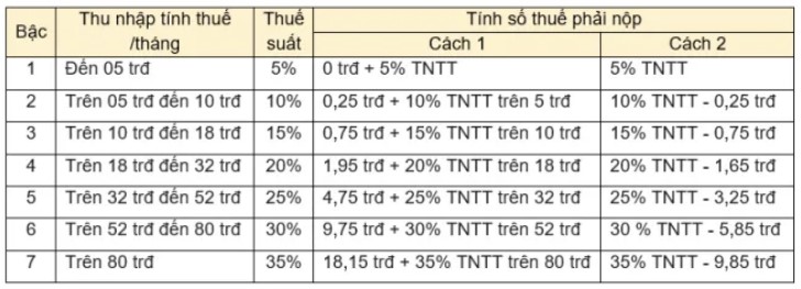 Lưu ý: Cách tính thuế này áp dụng đối với thu nhập từ tiền lương, tiền công