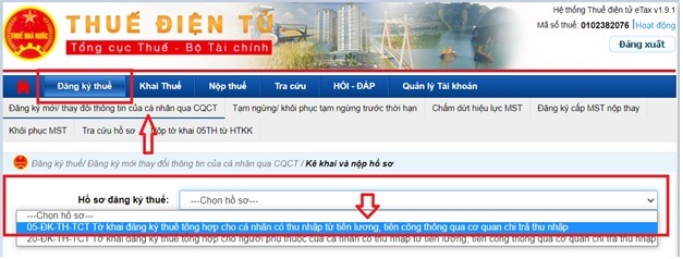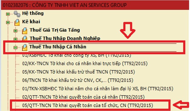 - Vào mục “Thuế thu nhập cá nhân” ⇨ Bấm chọn “05-ĐK-TH-TCT..”