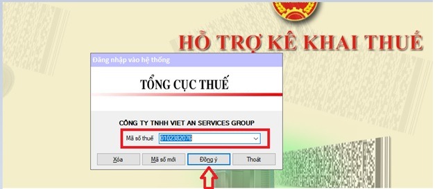 Bước 1: Đăng nhập vào phần mềm HTKK bằng MST doanh nghiệp