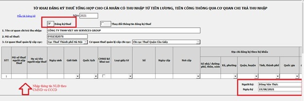 - Nhập thông tin cá nhân của người lao động đăng ký mã số thuế TNCN theo đúng thông tin trên chứng minh thư hoặc thể căn cước.