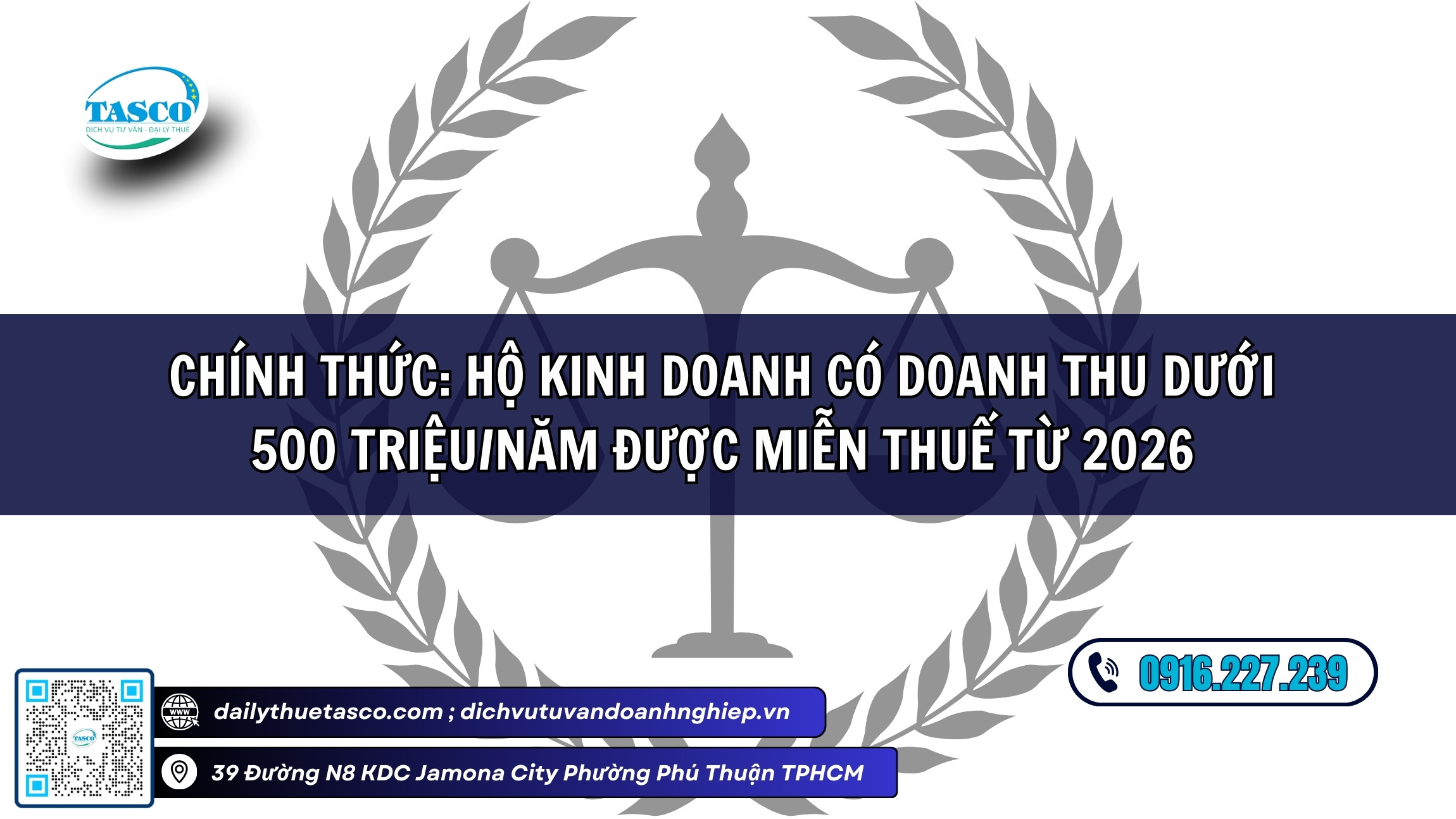 Chính thức: Từ 2026, hộ kinh doanh có doanh thu dưới 500 triệu đồng/năm không phải đóng thuế
