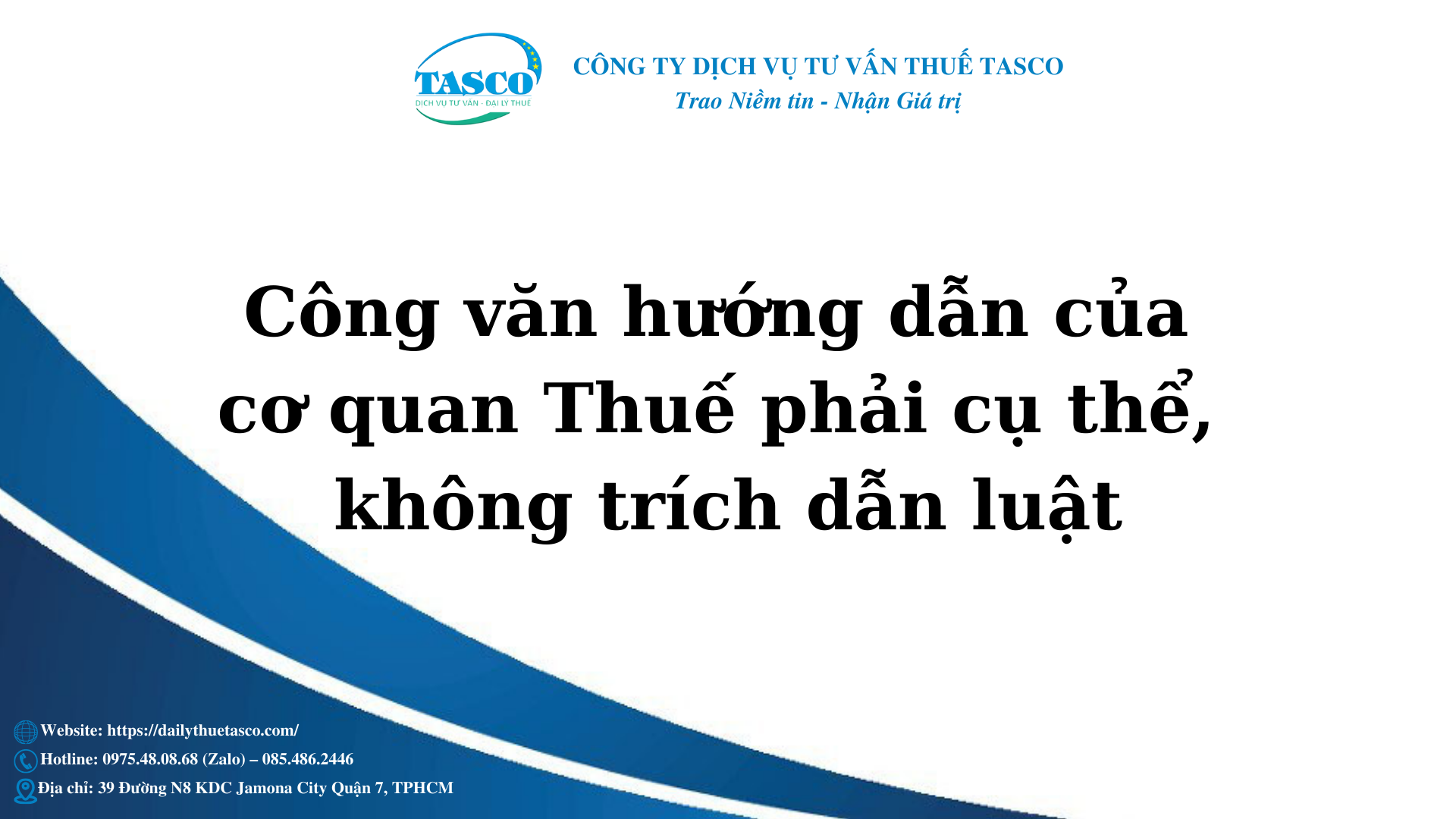 Đại lý thuế Tasco chia sẻ đến quý doanh nhân, doanh nghiệp về thông tin Công văn hướng dẫn của cơ quan Thuế phải cụ thể, không trích dẫn luật.