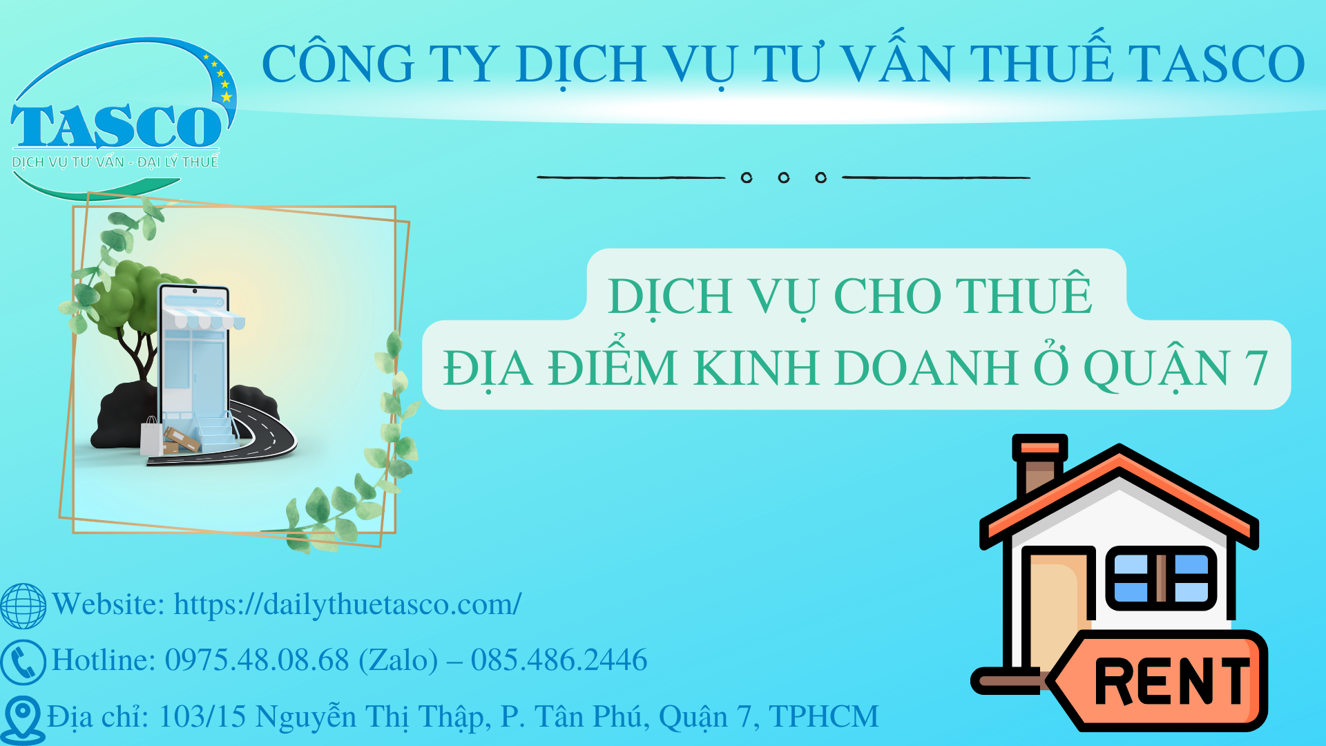 Nếu quý doanh nghiệp đang tìm kiếm địa chỉ để thành lập chi nhánh hoặc địa điểm kinh doanh hoặc chưa có địa điểm kinh doanh ở vị trí như ý thì liên hệ Tasco để có địa chỉ kinh doanh với chi phí thật tiết kiệm tại quận 7 chỉ từ 500k/tháng.