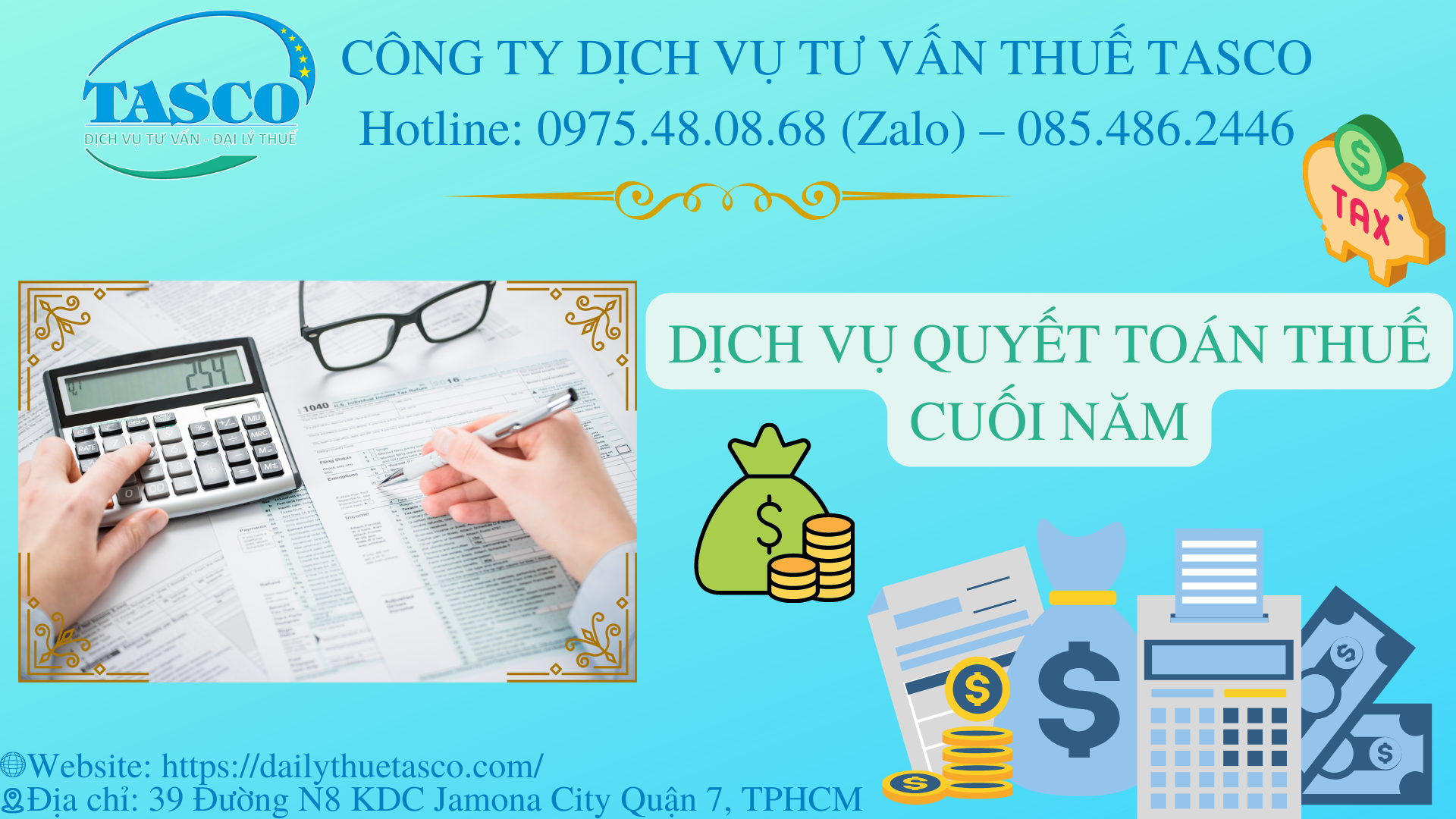 Giai đoạn cuối năm đang đến gần và doanh nghiệp của bạn đang cần một giải pháp để làm quyết toán thuế cuối năm. Bạn mong muốn sẽ không có ảnh hưởng gì đến các hoạt động kinh doanh. Nắm bắt được tất cả những nỗi lo trên, TASCO sẽ giúp quý khách hàng giải quyết một cách triệt để, với dịch vụ quyết toán thuế trọn gói cuối năm nhằm thay doanh nghiệp hoàn thiện công tác quyết toán thuế theo đúng chuẩn mực với chi phí tiết kiệm cho doanh nghiệp.