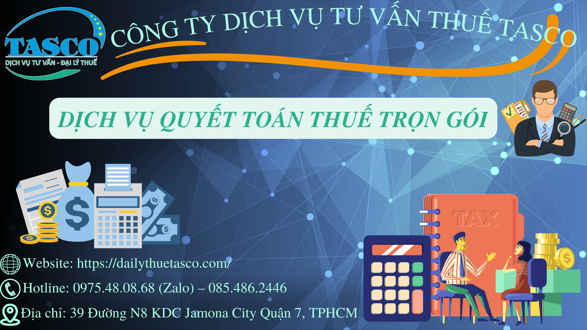🔎 Dịch vụ quyết toán thuế trọn gói ra đời nhằm thay các doanh nghiệp đang gặp khó khăn, vướng mắc về quyết toán thuế giải quyết công việc hiệu quả, được đội ngũ các chuyên gia kế toán TASCO thực hiện công việc thay doanh nghiệp. Bao gồm việc xử lý các hóa đơn chứng từ; ghi chép hoàn thiện sổ sách kế toán chuẩn mực. Đồng thời chuẩn bị đầy đủ các dữ liệu cho việc quyết toán thuế cuối năm.