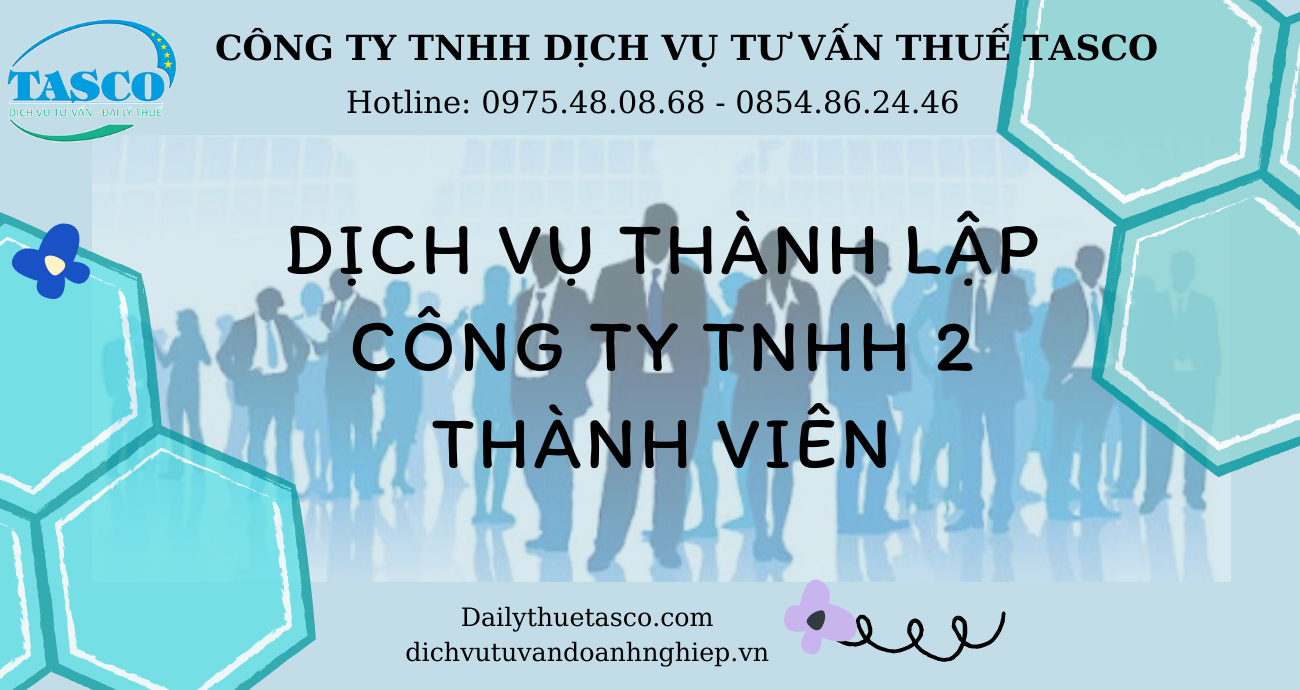 Để hiểu hơn về thủ tục đăng ký công ty TNHH 2 thành viên, cũng như điều kiện thành lập công ty TNHH 2 thành viên. TASCO sẽ cũng cấp “DỊCH VỤ THÀNH LẬP CÔNG TY TNHH 2 THÀNH VIÊN” cho quý doanh nhân.