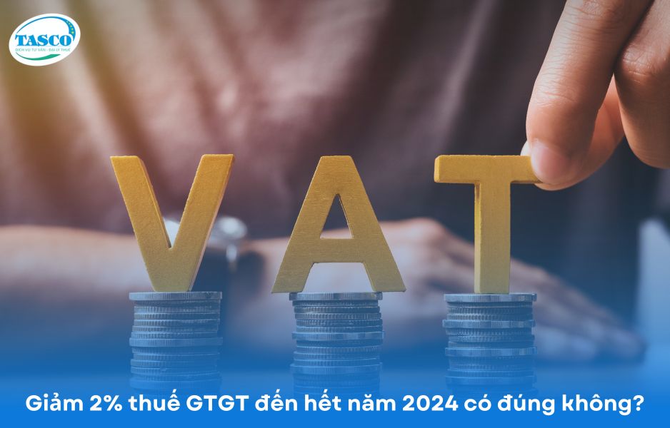 Nếu được Quốc hội thông qua, việc giảm 2% thuế GTGT cho đến cuối năm 2024, thay vì đến hết tháng 6 năm nay. Vậy thông tin trên có đúng hay không. Cùng Công ty TNHH Dịch vụ tư vấn thuế Tasco theo dõi bài viết dưới đây để hiểu rõ hơn nhé.