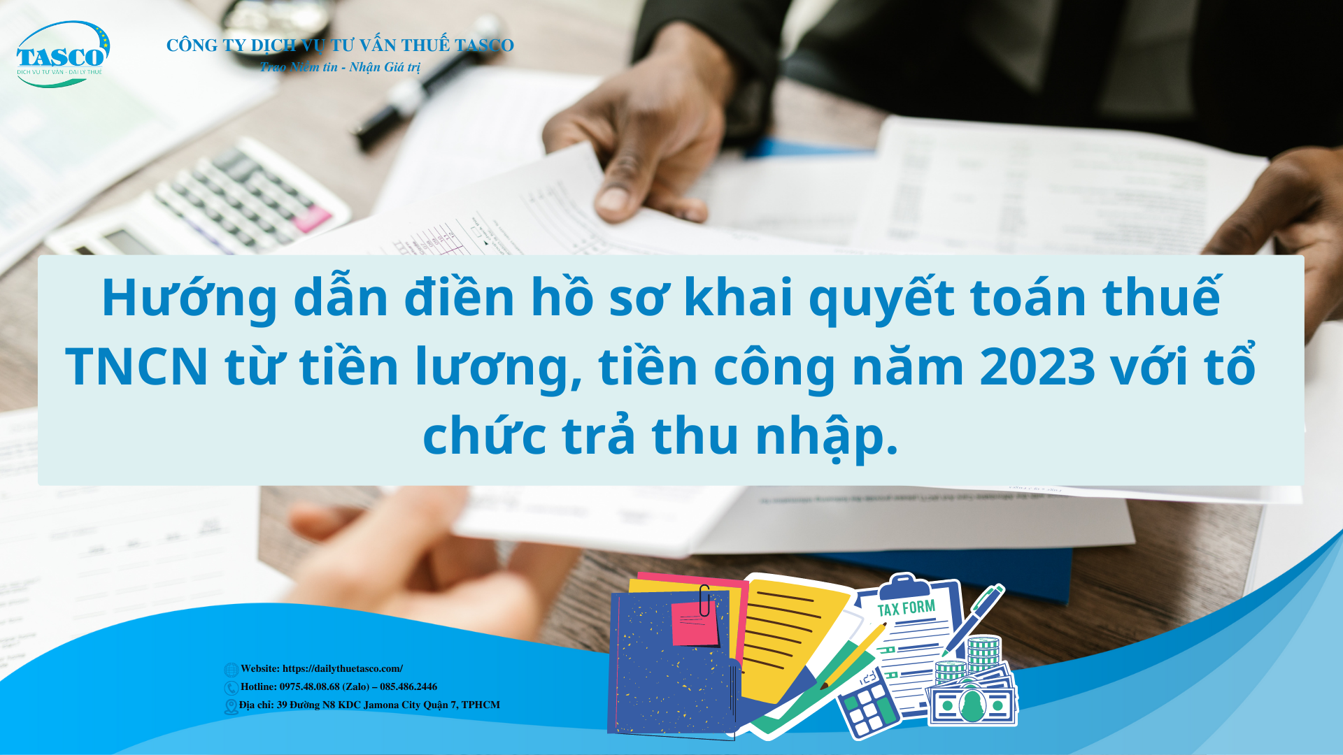 Đại lý thuế Tasco hướng dẫn quý doanh nhân điền hồ sơ khai quyết toán thuế TNCN từ tiền lương, tiền công năm 2023 với tổ chức trả thu nhập.