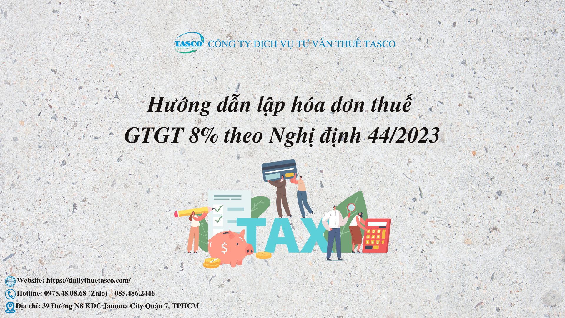 Chính phủ giảm thuế GTGT 2% từ ngày 01/7/2023 thì việc lập hóa đơn giảm thuế GTGT 8% sẽ như thế nào? Đại lý thuế Tasco hướng dẫn quý doanh nghiệp lập hóa đơn thuế GTGT 8% theo Nghị định 44/2023.