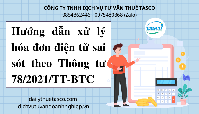 TASCO xin hướng dẫn xử lý hóa đơn điện tử sai sót theo Thông tư 78/2021/TT-BTC và hướng dẫn xử lý trên Phần mềm hóa đơn điện tử như sau: