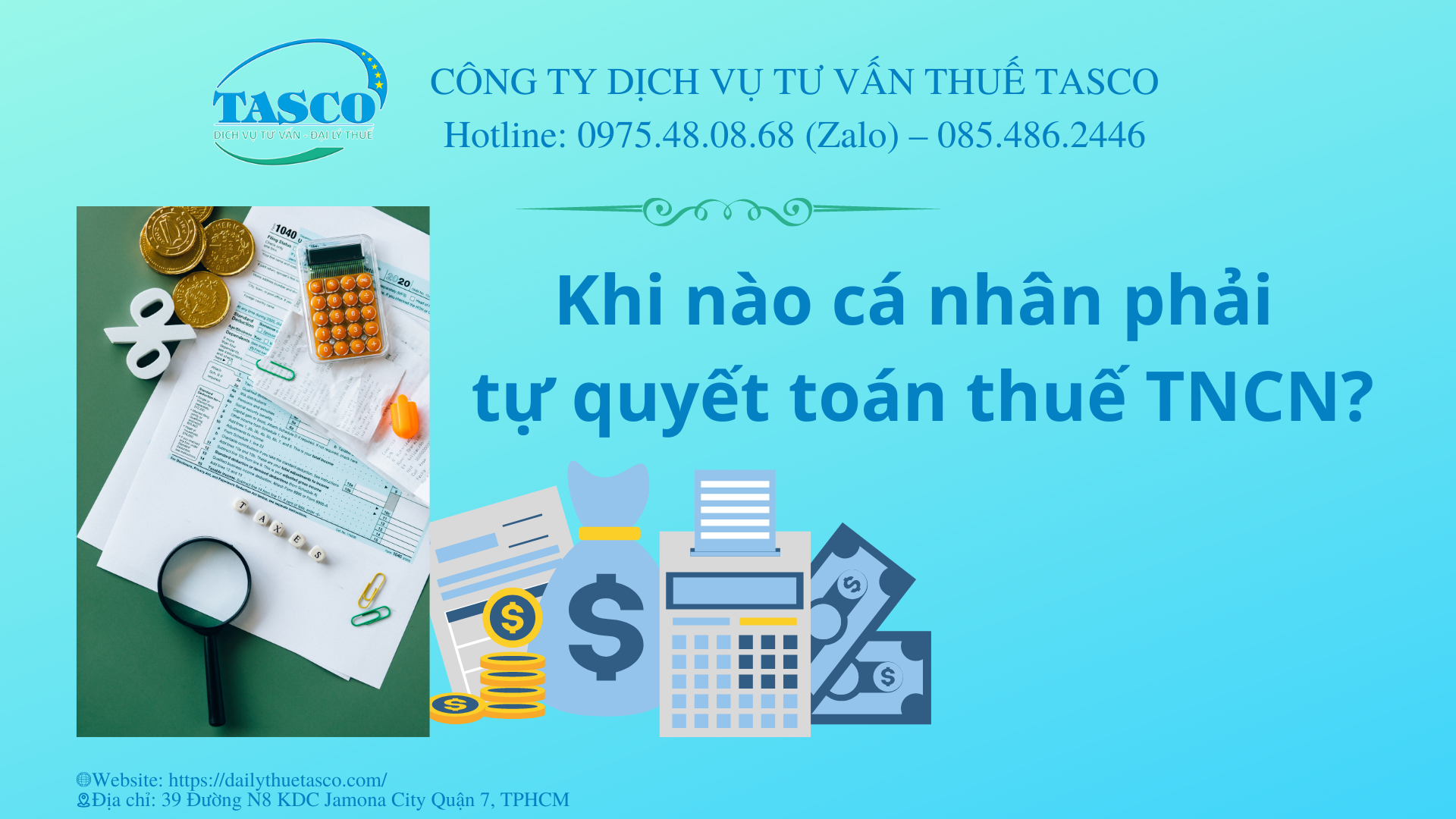 Người nộp thuế có thể ủy quyền cho cơ quan chi trả thu nhập quyết toán thay hoặc tự mình quyết toán. Vậy khi nào cá nhân phải tự quyết toán thuế TNCN? Đại lý thuế Tasco chia sẻ các thông tin cần thiết đến quý doanh nhân về vấn đề tự quyết toán thuế TNCN.