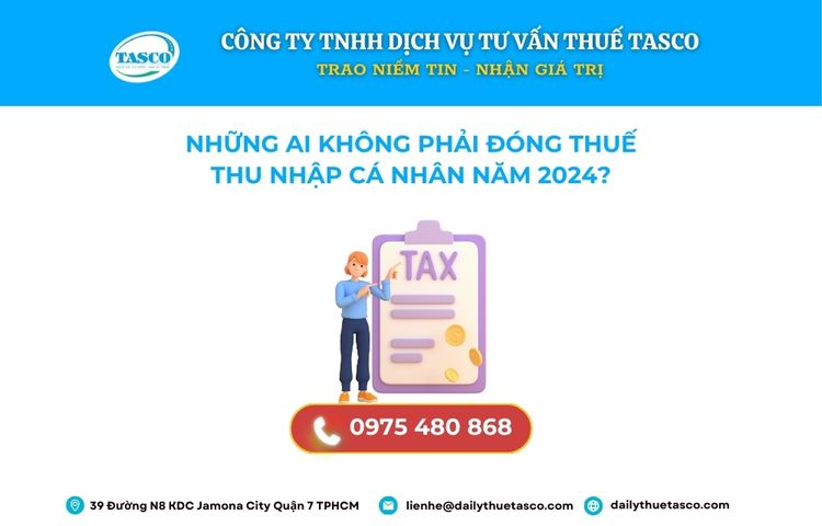 Thuế thu nhập cá nhân (TNCN) là khoản thuế bắt buộc mà mỗi cá nhân có thu nhập phải nộp cho Nhà nước. Việc nộp thuế TNCN góp phần đảm bảo công bằng xã hội và nguồn thu cho ngân sách nhà nước. Tuy nhiên, vẫn có một số trường hợp không phải đóng thuế TNCN. Trong bài viết dưới đây Tasco chia sẽ với bạn bài viết "Những ai không phải đóng thuế thu nhập cá nhân năm 2024"