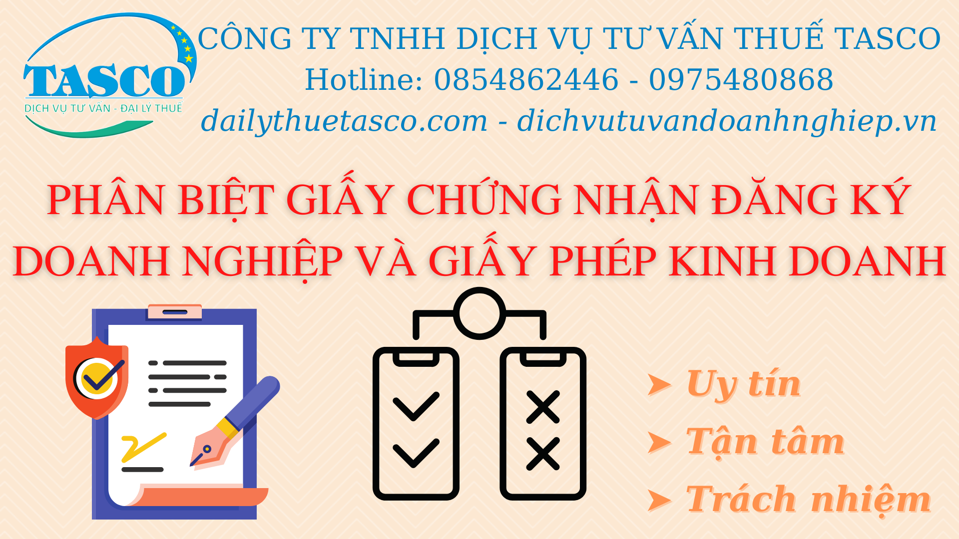 Hiện nay có nhiều người vẫn đang nhầm lẫn giấy chứng nhận đăng ký doanh nghiệp và giấy phép kinh doanh đều là cùng một loại giấy tờ. Bài viết này của TASCO sẽ giúp quý khách hàng phần biệt 2 loại giấy tờ trên.
