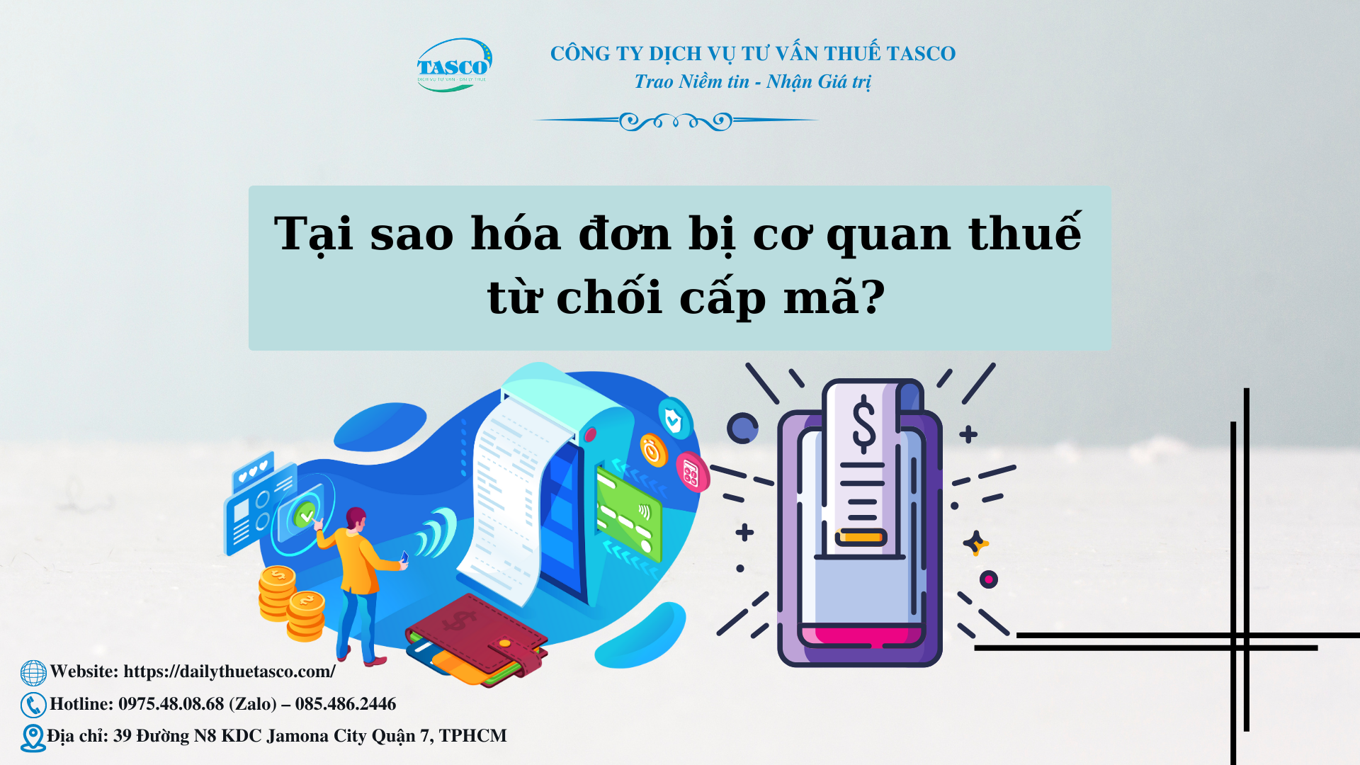 Hóa đơn thuộc diện cấp mã của cơ quan thuế vẫn bị từ chối trong một số trường hợp. Và tại sao hóa đơn bị cơ quan thuế từ chối cấp mã? Bài viết sau đây Đại lý thuế Tasco sẽ giúp quý doanh nghiệp làm rõ các vấn đề trên.
