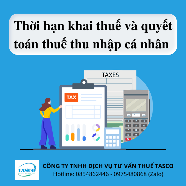 TASCO xin cung cấp cho bạn những thông tin cần thiết về thời hạn khai thuế và quyết toán thuế TNCN mới nhất. Nếu khách hàng có những thắc mắc vui lòng liên hệ đến Đại lý thuế TASCO để được giải đáp và tư vấn hoàn toàn miễn phí!