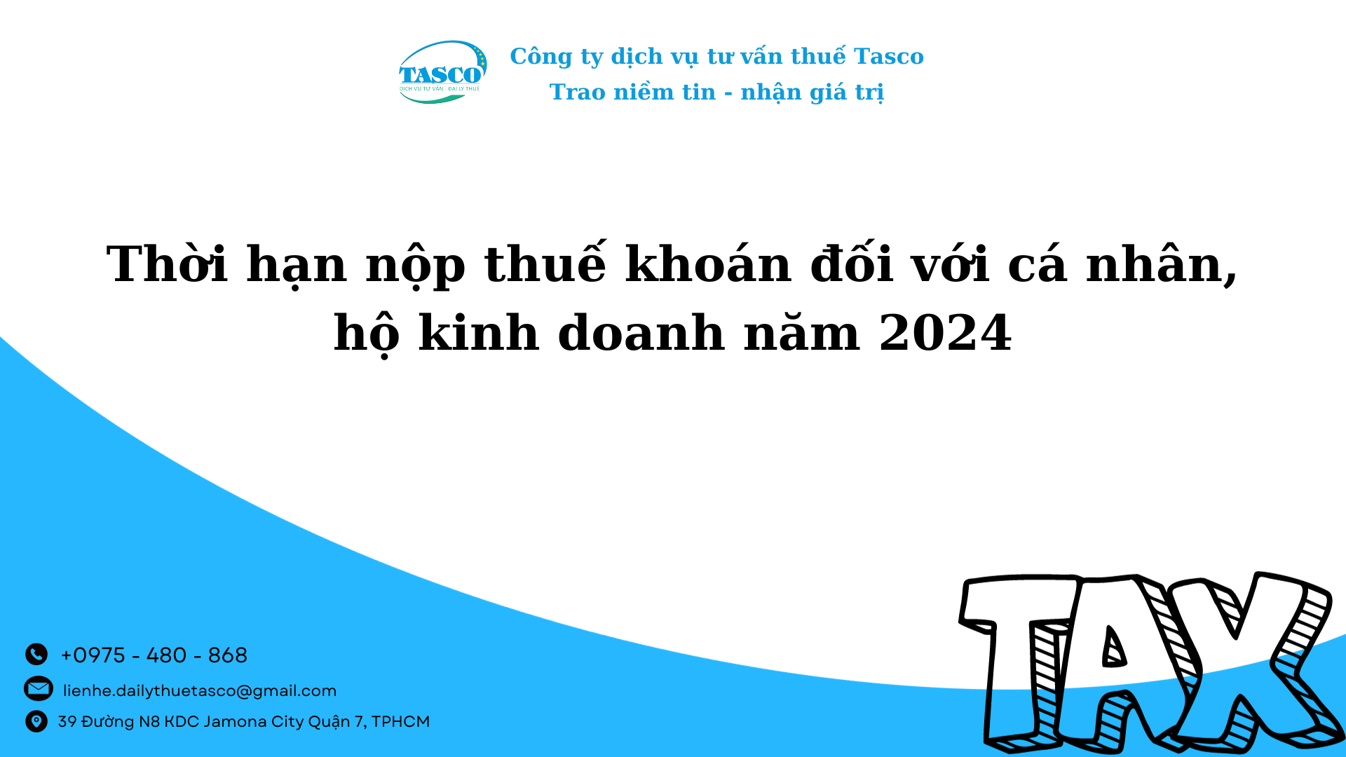 Đại lý thuế Tasco chia sẻ đến quý doanh nhân, doanh nghiệp thời hạn nộp thuế khoán đối với cá nhân, hộ kinh doanh năm 2024.