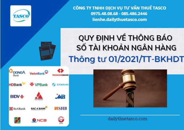 Ngày 16/03/2021, Bộ Kế hoạch và Đầu tư ban hành Thông tư số 01/2021/TT-BKHĐT về việc hướng dẫn đăng ký doanh nghiệp, có hiệu lực thi hành ngày 01/05/2021. Một trong những điểm nổi bật của Thông tư này là “Bỏ quy định đăng ký số tài khoản ngân hàng với cơ quan đăng ký kinh doanh” khi đăng ký thành lập doanh nghiệp mới. Cụ thể về quy định này, Đại lý thuế TASCO sẽ làm rõ trong bài viết dưới đây, kính mới quý khách hàng tham khảo.