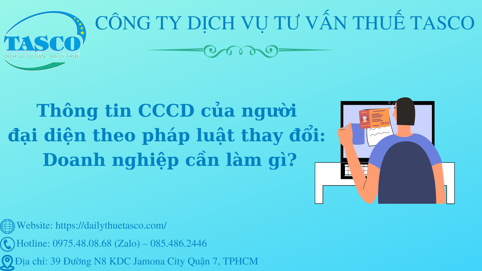 Đại lý thuế Tasco chia sẻ đến quý doanh nghiệp những điều cần làm khi thông tin CCCD của người đại diện pháp luật thay đổi, giúp doanh nghiệp thực hiện đúng và đủ theo pháp luật, để hoạt động kinh doanh thuận lợi và hiệu quả hơn.