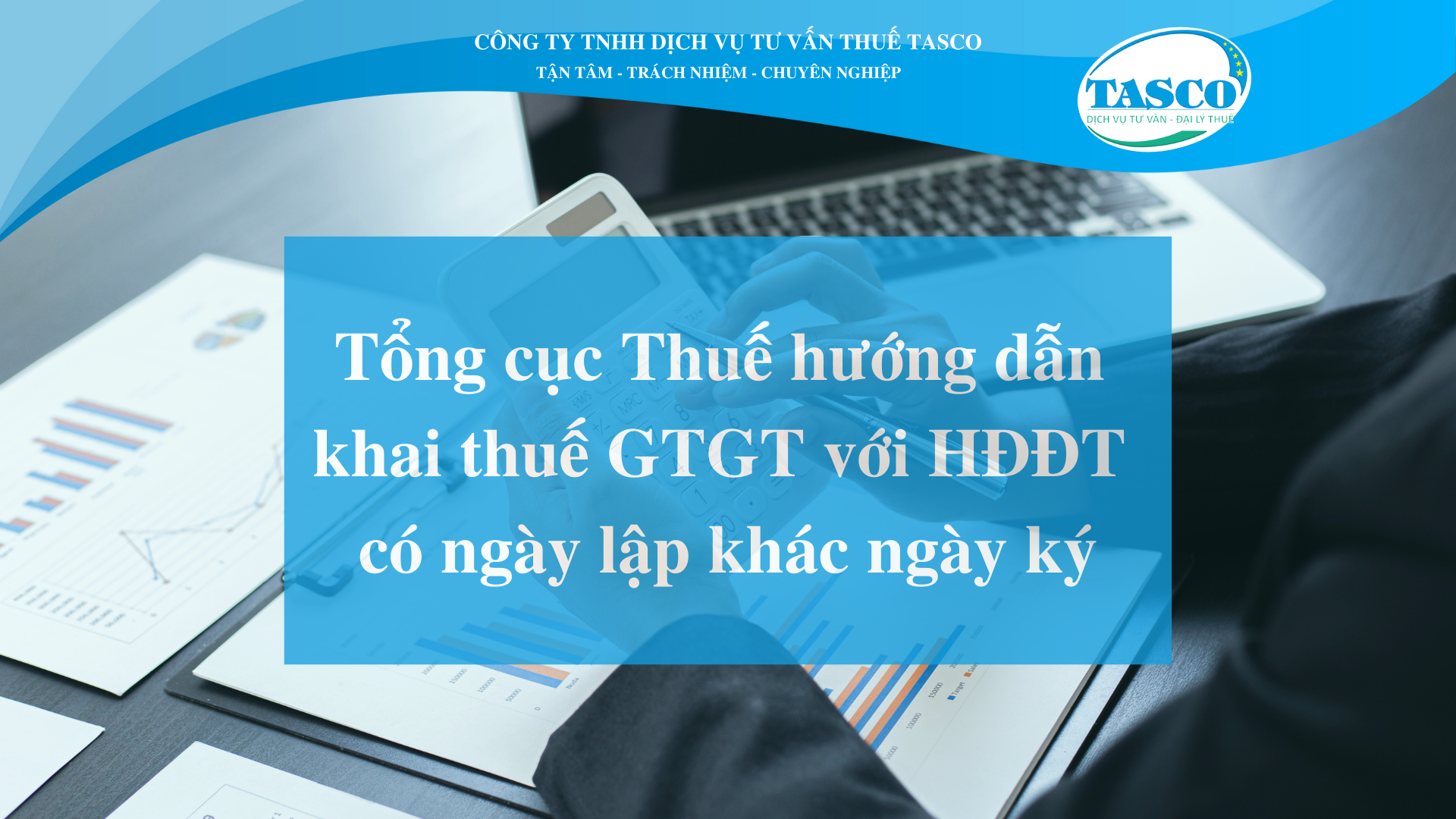 Đại lý thuế Tasco cung cấp đến quý doanh nhân, kế toán viên về thông tin Tổng cục Thuế hướng dẫn khai thuế GTGT với HĐĐT có ngày lập khác ngày ký năm 2023.
