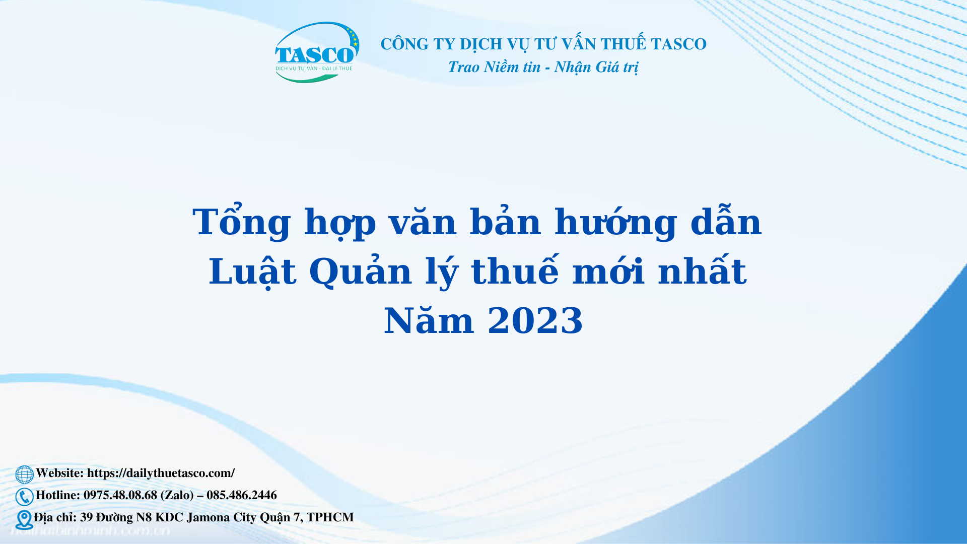 Luật Quản lý thuế mới nhất năm 2023 là Luật Quản lý thuế năm 2019. Bài viết sau đây Đại lý thuế Tasco tổng hợp văn bản hướng dẫn Luật Quản lý thuế mới nhất đến quý doanh nhân và doanh nghiệp.