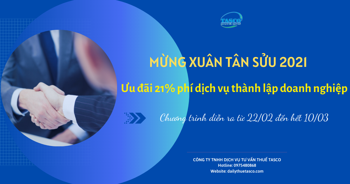 >> Ưu đãi 21% phí dịch vụ thành lập doanh nghiệp trọn gói (Chương trình diễn ra từ 22/02 đến hết 10/3)