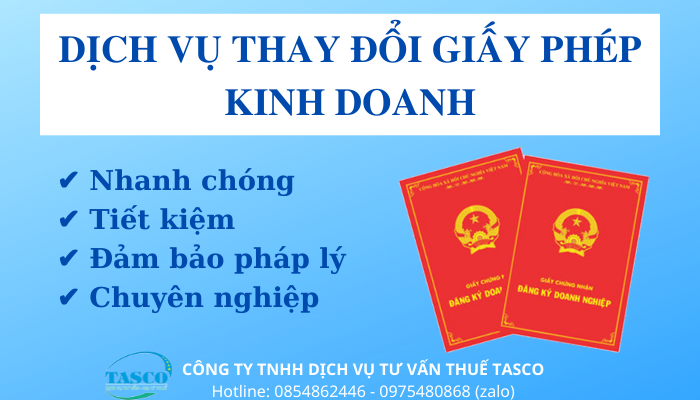 DỊCH VỤ THAY ĐỔI GIẤY PHÉP KINH DOANH – ĐẠI LÝ THUẾ TASCO