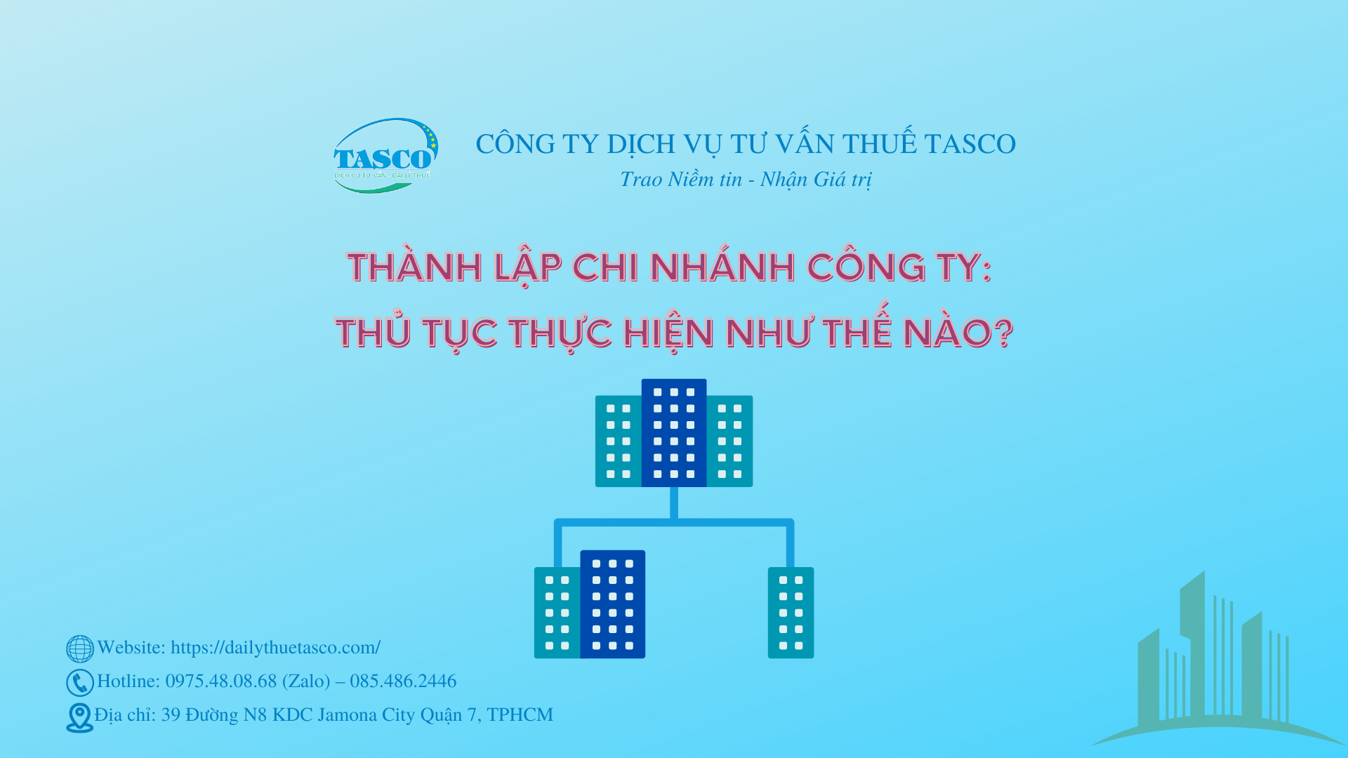 Bên cạnh thủ tục thành lập doanh nghiệp thì thủ tục thành lập chi nhánh công ty cũng được rất nhiều doanh nghiệp quan tâm và tìm hiểu. Dưới đây Đại lý thuế Tasco chia sẻ chi tiết về các thủ tục này.